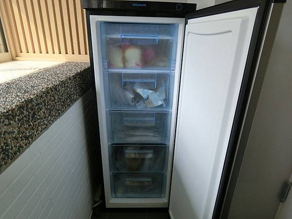前陣子購入了直立式冷凍櫃,後陽台的洞終於完整了!
