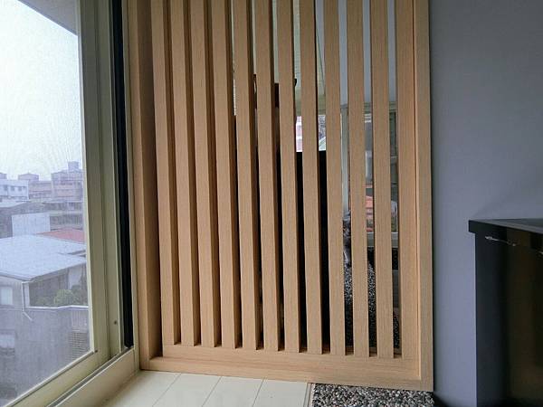 柵欄在貓房那側是做固定的,外陽台這側採活動的(左右拉)