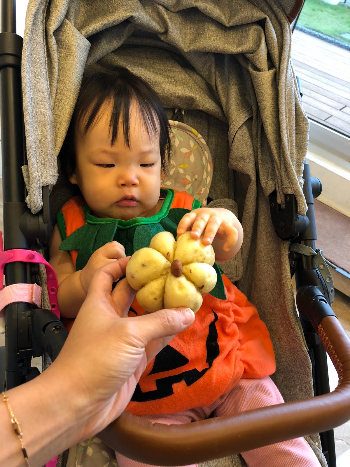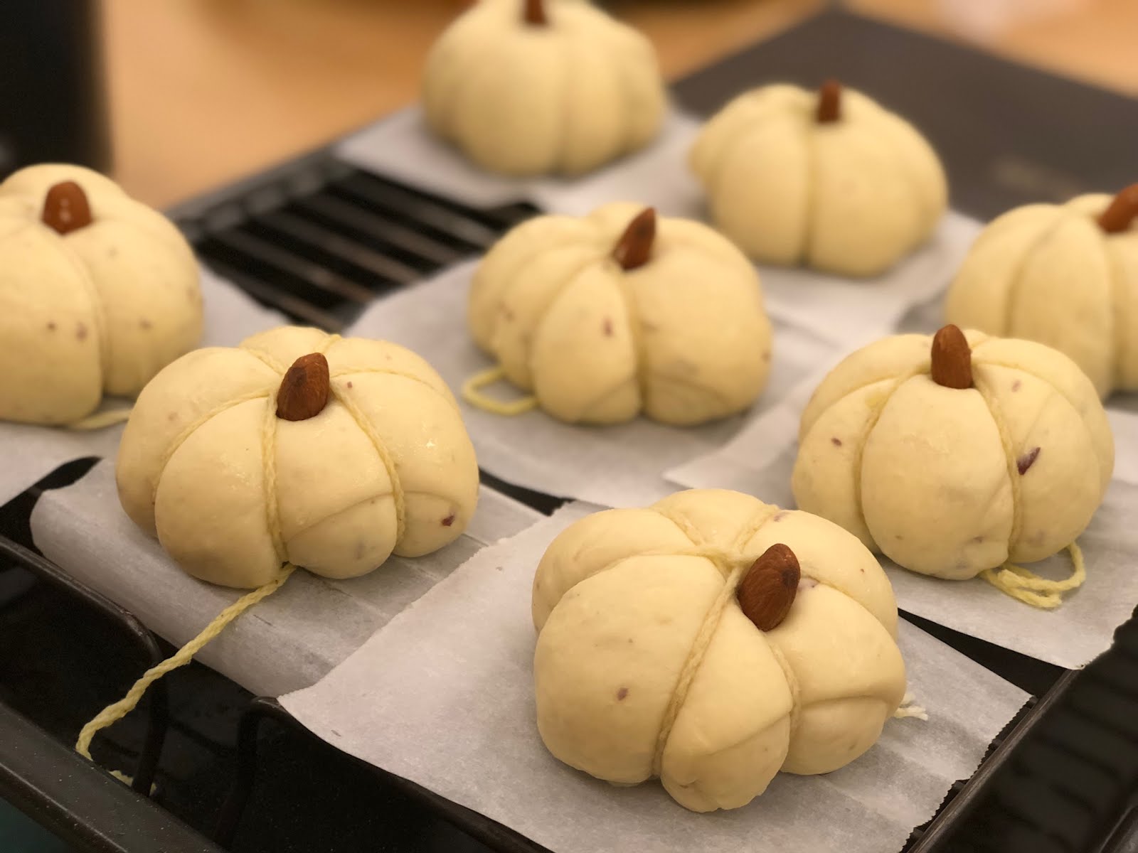 結果..模具在路上耽擱了來不及到(焦慮) 臨時改成南瓜造型饅頭!
