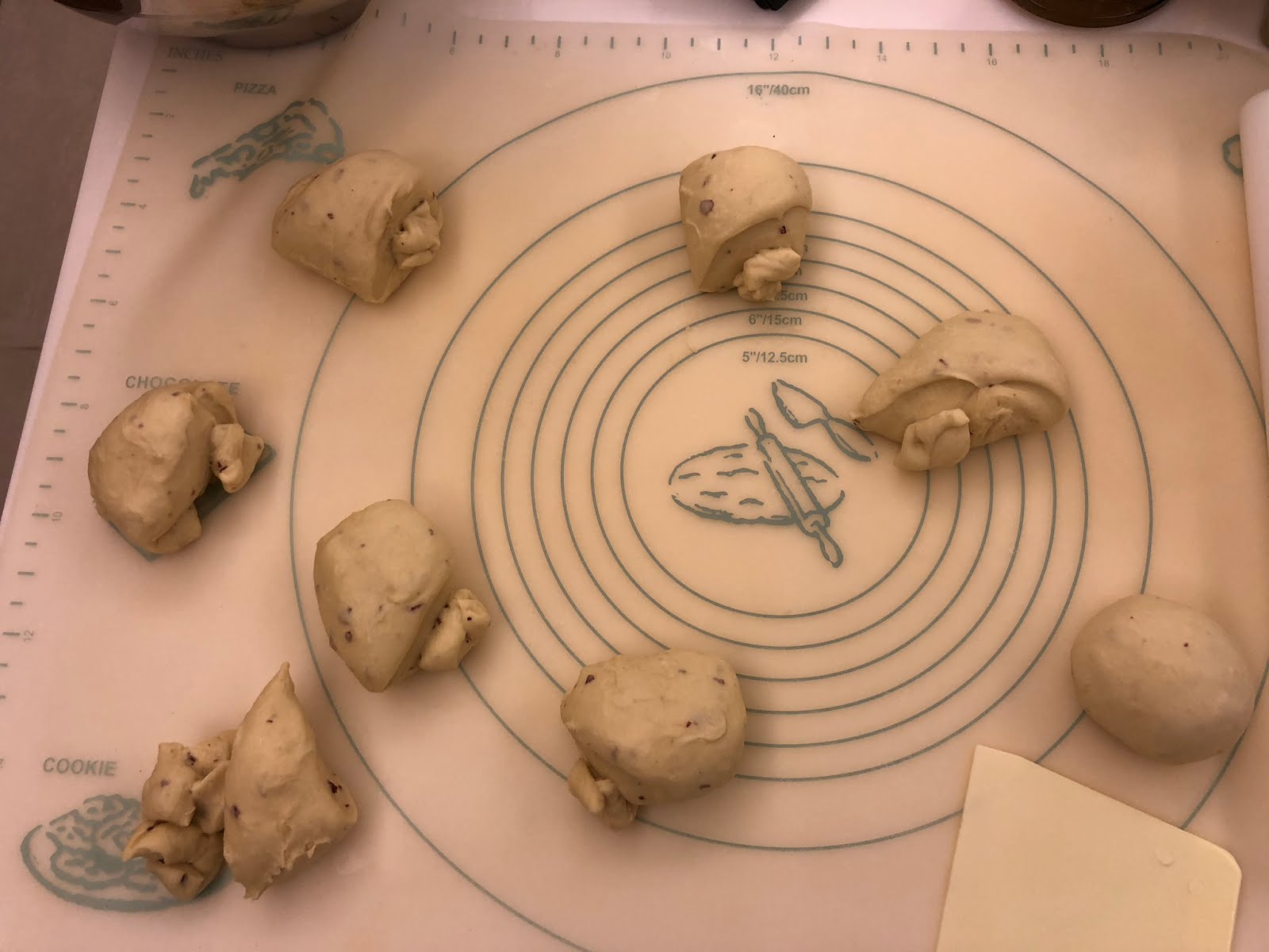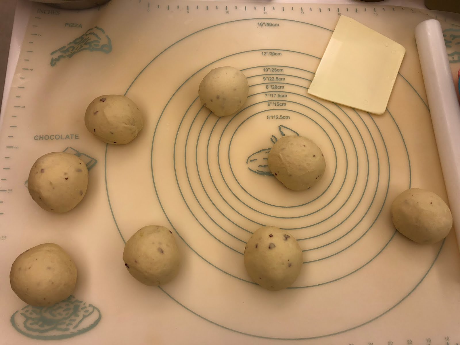 分切發酵好的麵團為八份(一份大概是80G左右,大概有大人的手心那麼大,可以切更小也沒關係)
