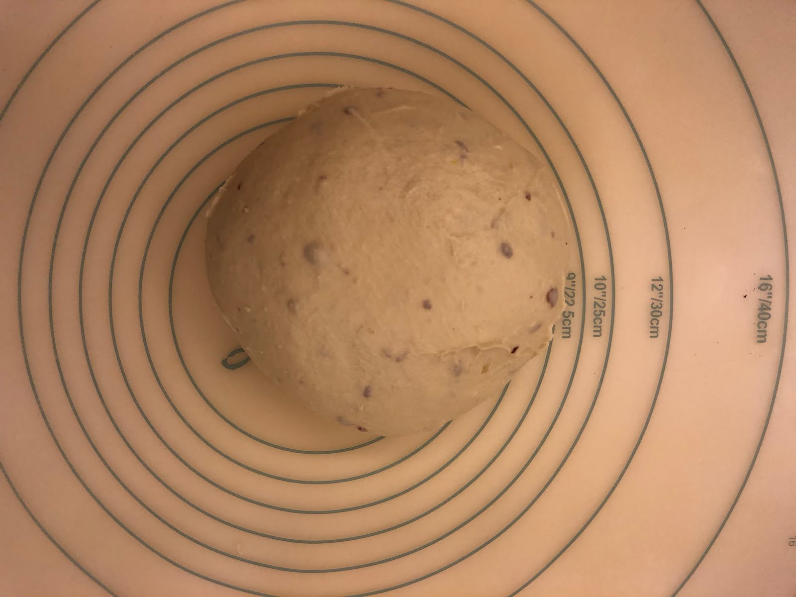 揉好的麵團整成圓型,裝一杯熱水跟麵團一起放到密閉空間進行基礎發酵60分鐘。