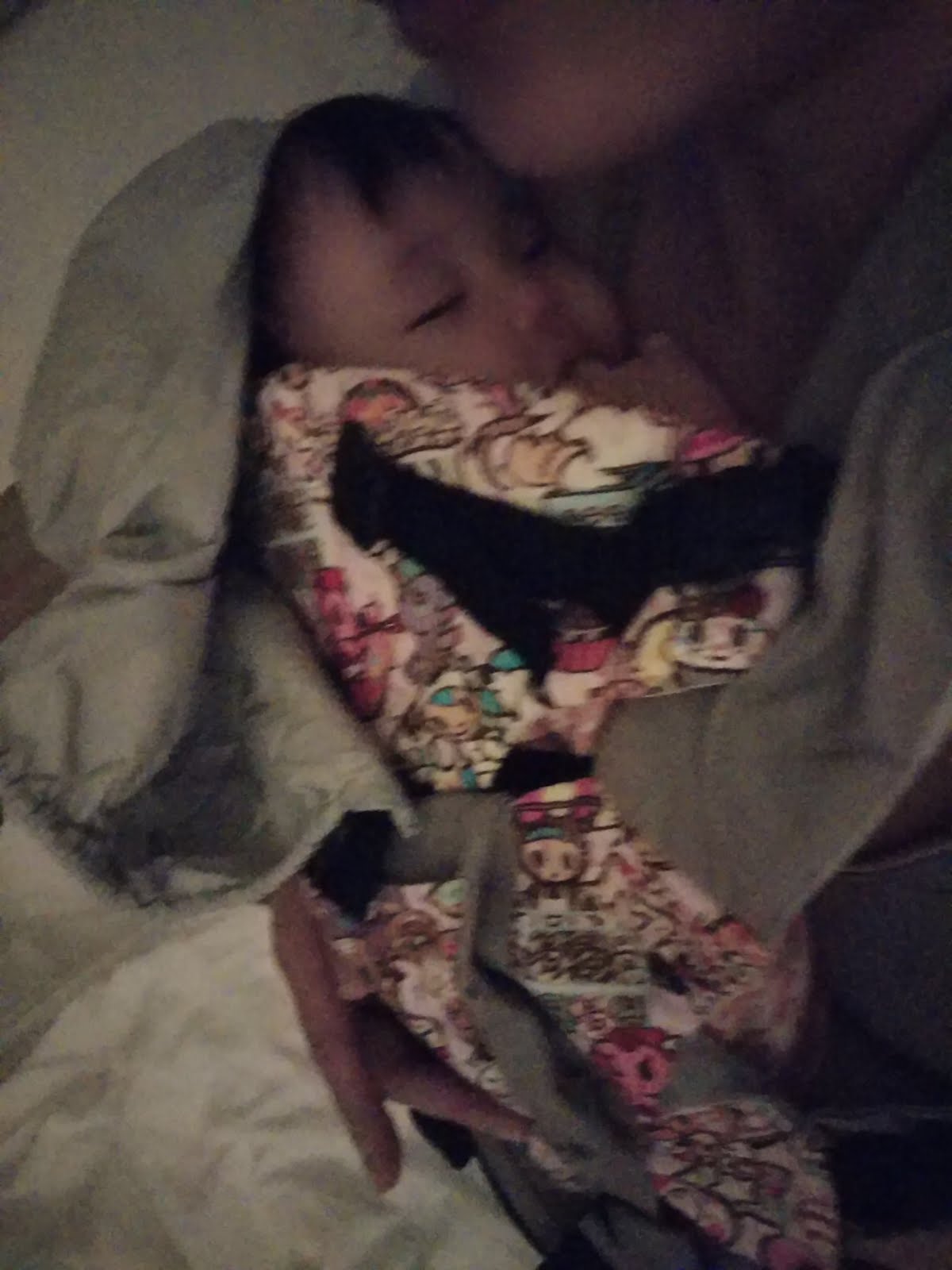 平常八點睡覺的亮亮,居然在我跟Z輪流泡湯完都十一點了還醒著,跟喝醉一樣東倒西歪的爬來爬去,就算關燈保持安靜也沒有用,只好使出大絕招,一揹起來秒睡超誇張!
