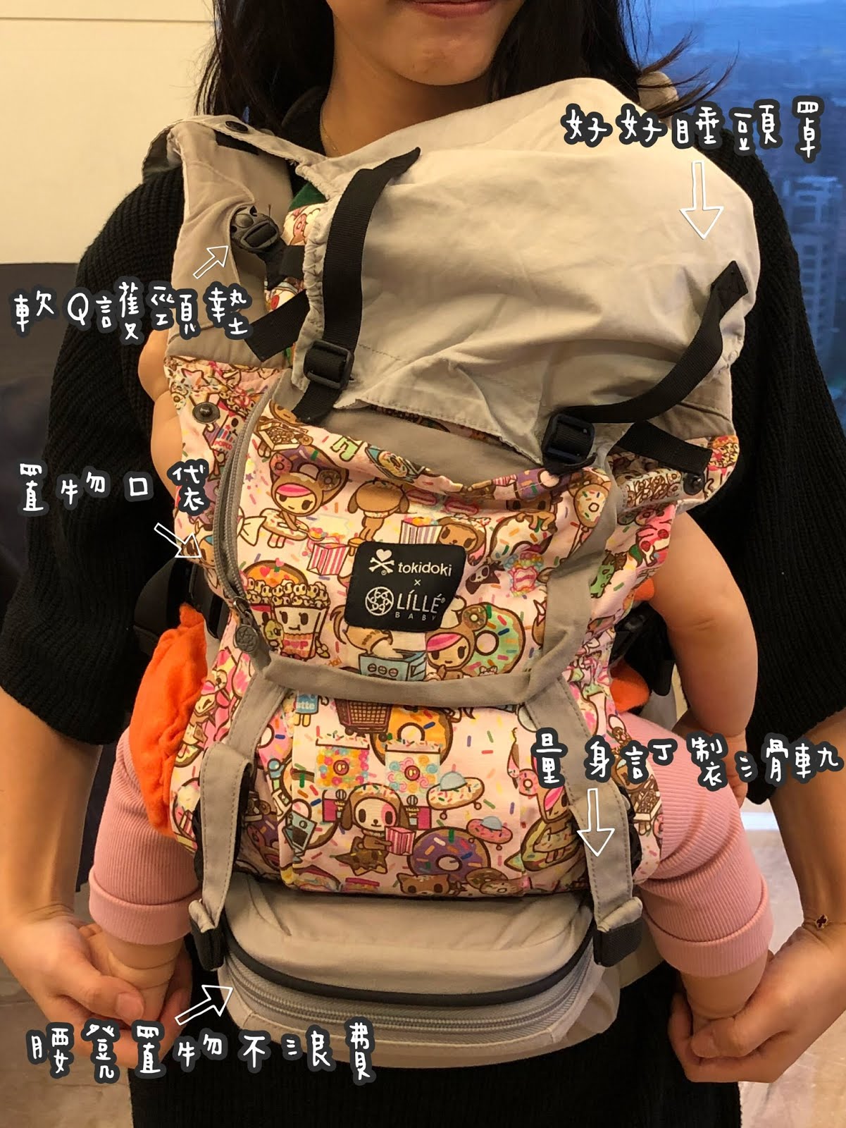 記得揹在腰部最細的位置(骨盆上方而不是在骨盆上)寶寶的頭很高是正常的,而且會因為孩子長大而視線越來越差XD
