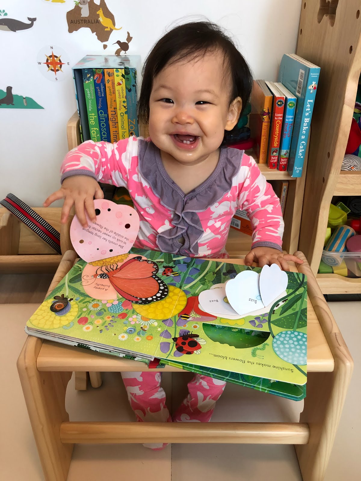 最近亮很喜歡機關書,發現自已會翻還會幫自已拍手哦,嬰兒太可愛了!