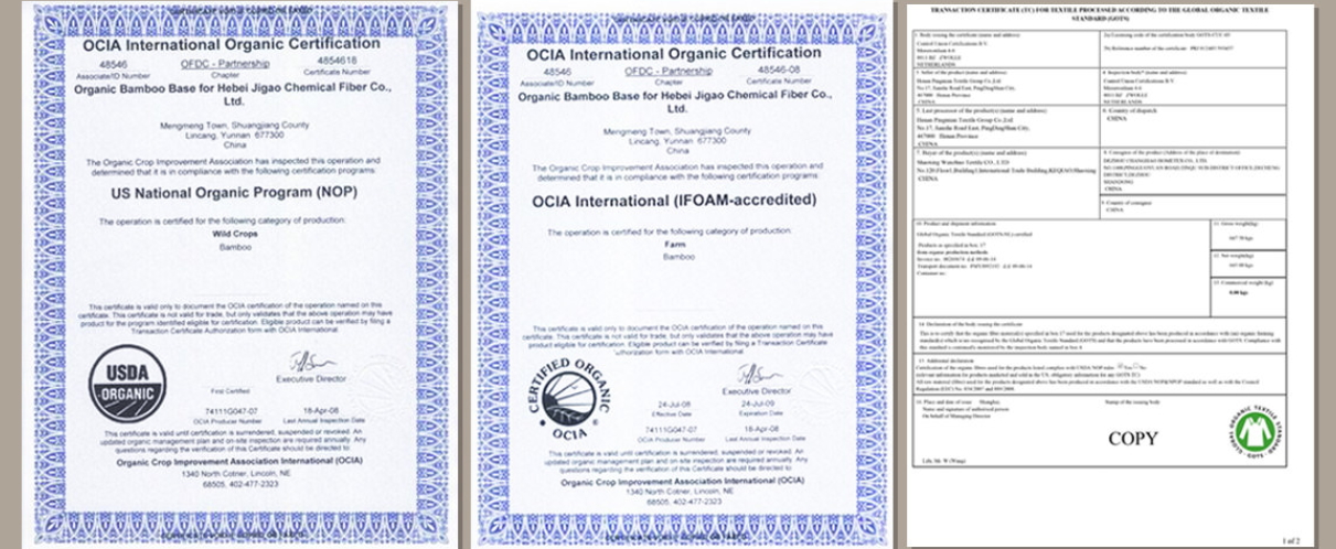 「GOTS」「USDA」「Oeko Tek100」認證的有機織物和竹纖維與無毒汙染的染料,通過各大國際的有機認證。
