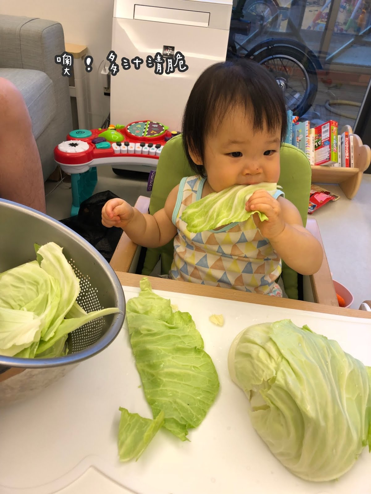 但是要教導他並不是什麼都能吃,要媽咪拿給他的才可以,以免在戶外吃到有毒的植物。