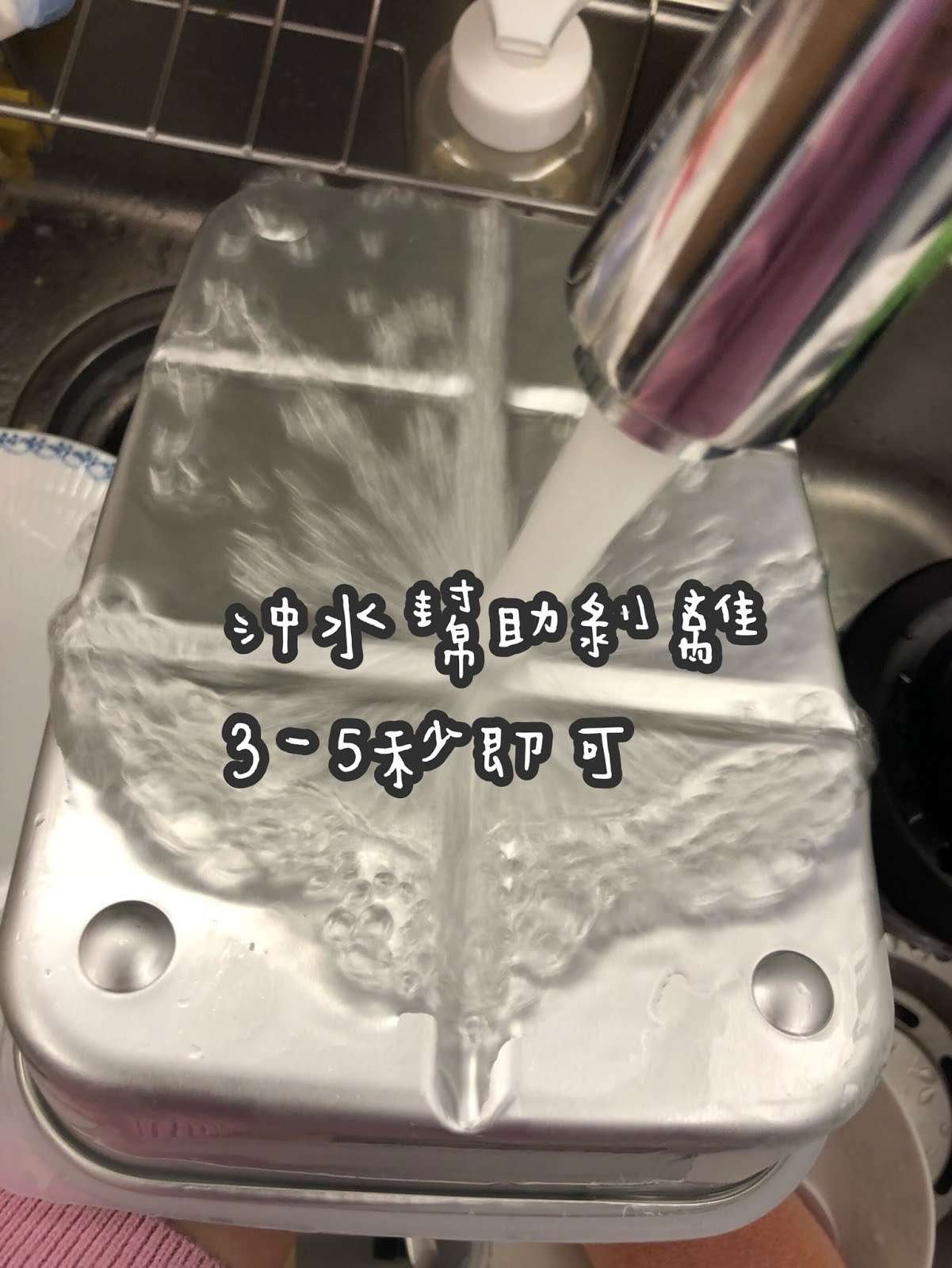 超級冰的,鋁盒傳導很快~我試著直接要敲下來沒辦法,改由沖水幾秒再拆就沒問題了。