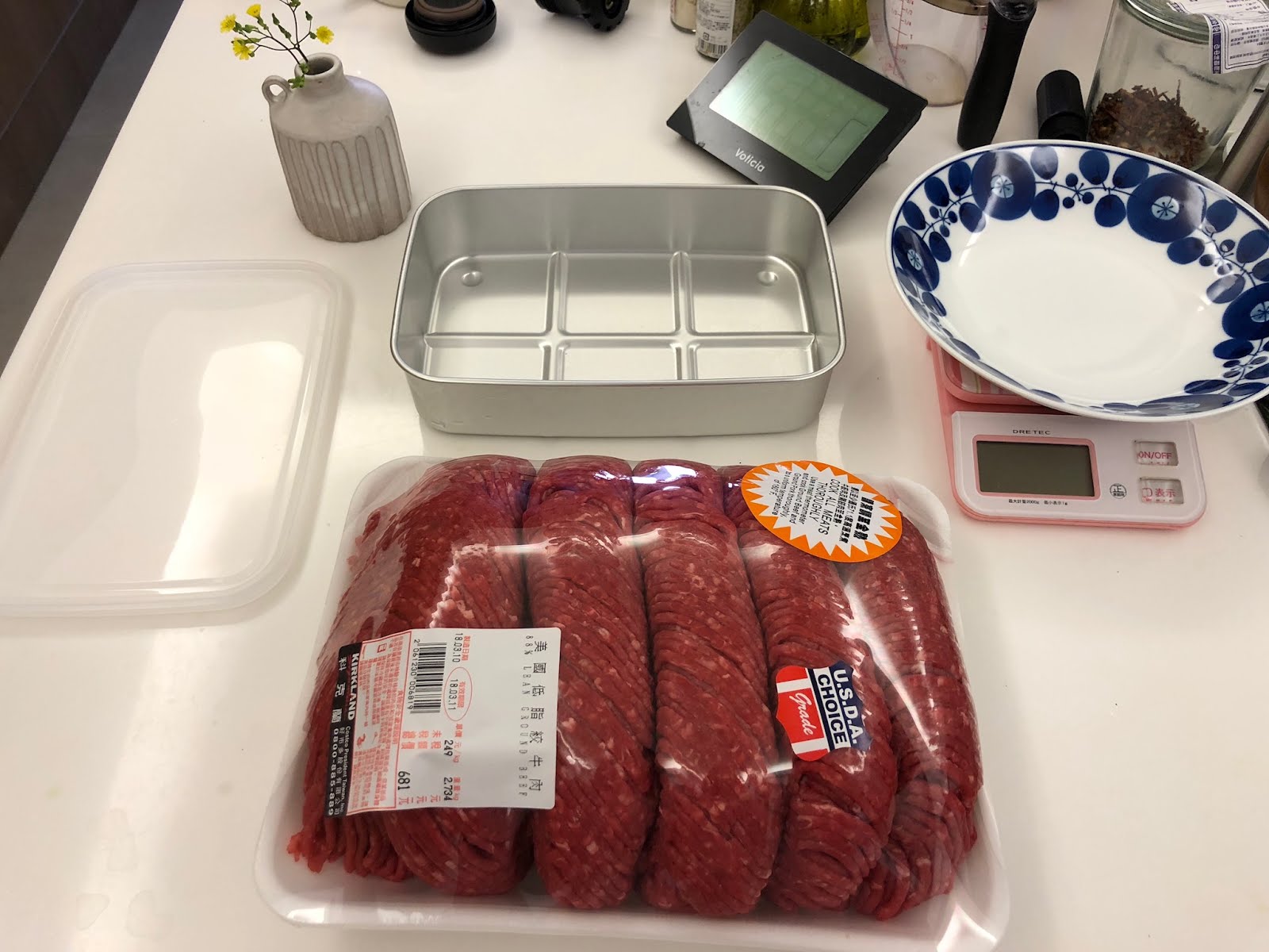 一次打完所有的絞肉基底,再分等份依續加入配料。